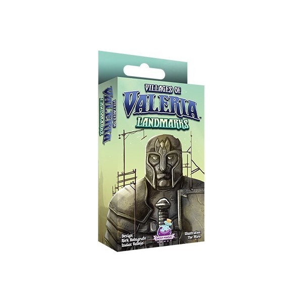 In Villages of Valeria: Landmarks, players will be able to discard cards with specific resources in order to take and build Landmark tokens on their Castle card. At the end of the game, the player with the most of each token will gain bonus points. You can also earn bonus points by collecting sets of all 5 Landmark token types. Will you leverage the new Landmarks to be declared the next capital of Valeria?
