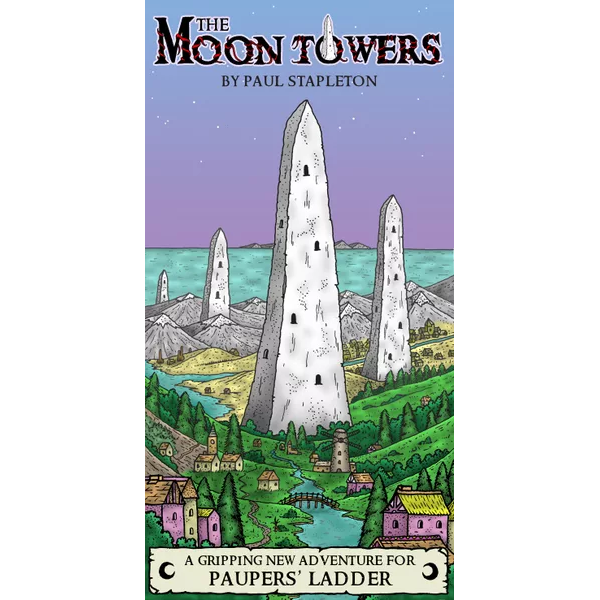 The Moon Towers is a brand new adventure for Paupers’ Ladder, with almost 400 cards depicting new towns, villages, ruins, monsters, citizens, equipment and quests, as well as 8 new paupers and 14 new birds to play. Venture into Brighthelm to defeat the malevolent Moon Towers.