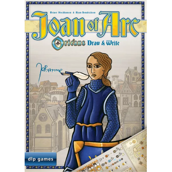 In Joan of Arc: Orléans Draw & Write, 1-5 players draft followers that will help them move about France, gather goods, build buildings, establish trading stations, make money, and contribute to beneficial deeds. The player who can best utilize the followers they choose will score the most points and win.