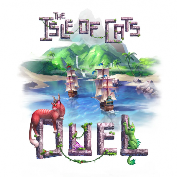 In The Isle of Cats Duel — a competitive, standalone game designed specifically for two players — you are citizens of Squalls End on a rescue mission to the Isle of Cats and must save as many cats as possible before the evil Lord Vesh arrives. Each cat is represented by a unique tile and belongs to a family; you must find a way to make them all fit on your boat while keeping families together.