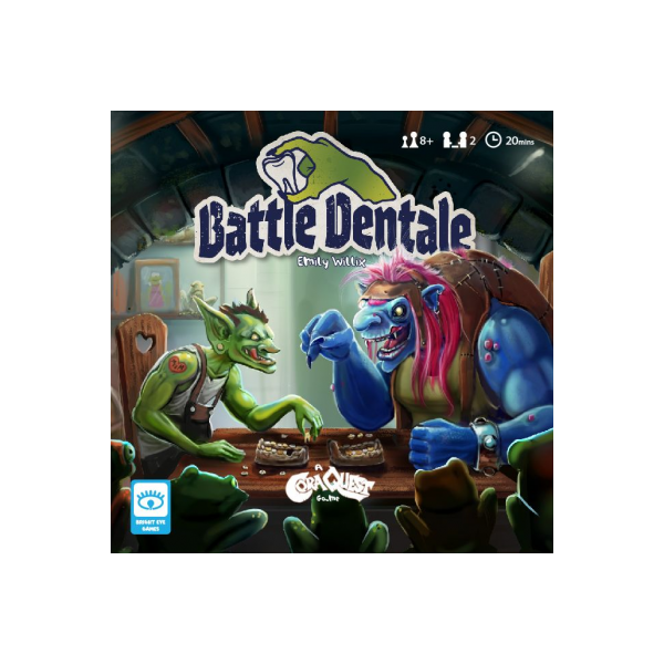 In Battle Dentale, you play either Gumrot the Goblin or Toothache the Troll, competing to collect the best collection of teeth from a jawbone. Toothache favors the cleaner teeth because they're shiny, while Gumrot likes the decaying ones as the smell reminds them of their mum. Winning requires strategy, efficient decision-making, and sometimes evil moves to sabotage your opponent! To win, gather a more highly valued collection of teeth than the other player.