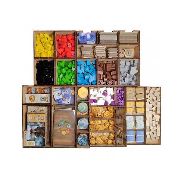 £22.95Wooden insert compatible with Age of Innovation. Holds sleeved cards. Individual trays, so you can use them to have easy access to cards and components during the game while keeping everything organized.