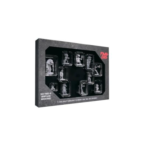This box set contains 11 miniatures (assembled and unpainted) from the Final Girl Board Game: Bad Times At Buddyland Expansion.