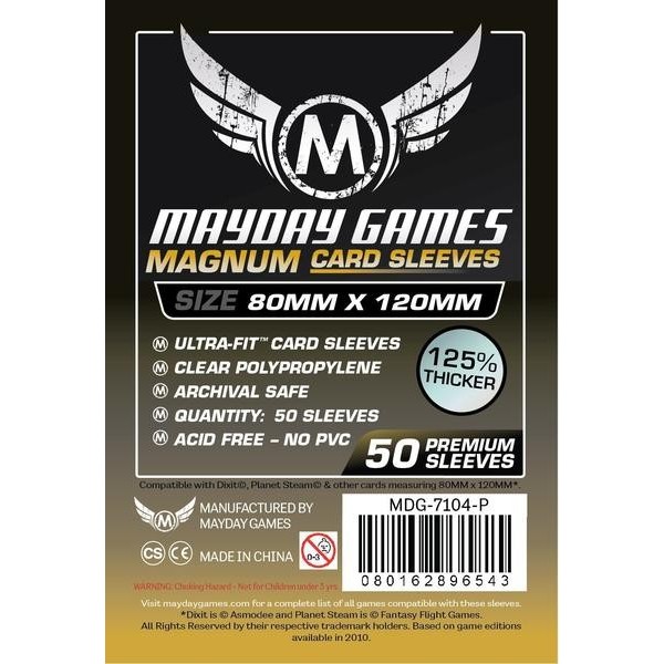 Pack of 50 Card Sleeves to protect the cards of your games. Size Magnum Gold Premiun cards(80mm x 120mm).
