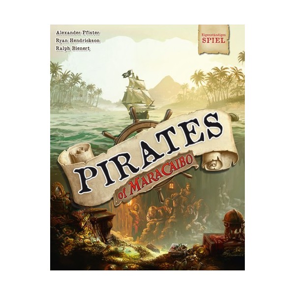 Pirates of Maracaibo Board Game plays over three rounds in which you sail the Caribbean, hire crew, ally with other ships, explore the shore, amass the most treasure, and (ideally) retire to a secluded island as the most revered pirate in history.