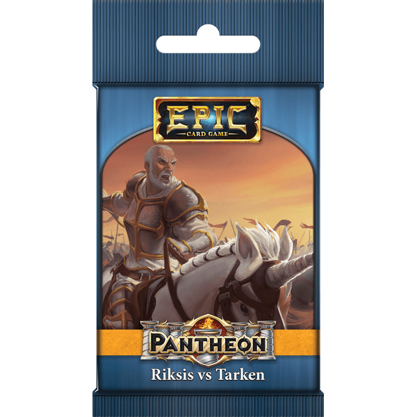 Epic Card Game: Pantheon is an expansion for the Epic Card Game that's packaged in six non-random booster packs (Furios vs Maligus, Helena vs Zaltessa, Angeline vs Scara, Gareth vs Lashnok, Shadya vs Valentia, and Riksis vs Tarken), with each booster pack containing twelve new game cards, 2 deity/token cards, and 1 double sided token card.