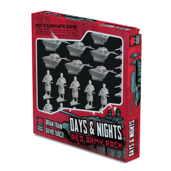 Days & Nights: Red Army Pack is an add-on pack that contains 28 miniatures compatible with both Days of Ire and Nights of Fire. It also contains a small deck expansion to Nights of Fire, and an additional deck allowing campaign play.